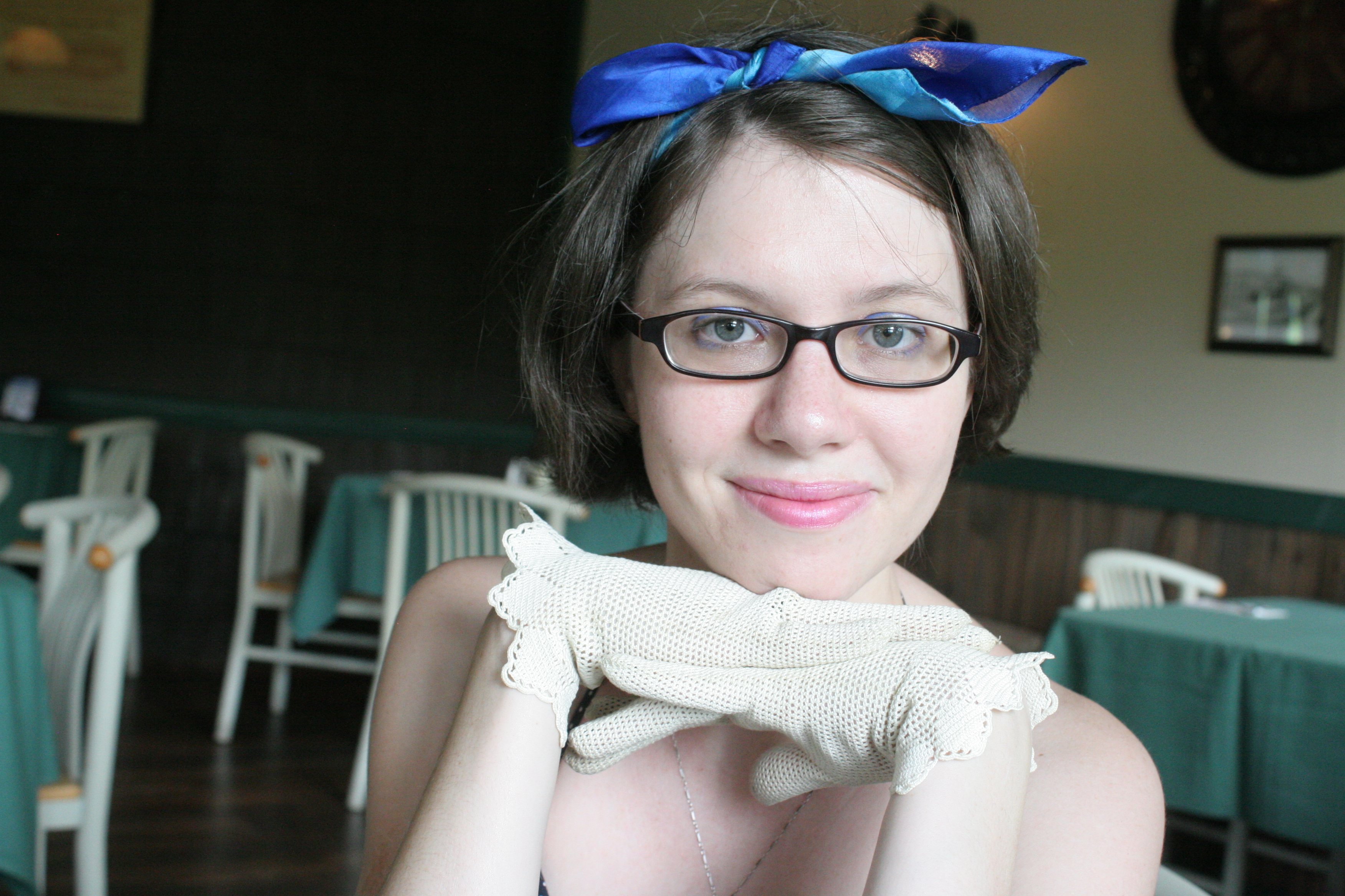 I relaced it and tried again. It had a bit of a Flashdance vibe, but it worked. And my dad was happy to see me enjoying his gift. And my niece Lucy put on a pair of 3D glasses she found, trying to imitate her Aunt Libby. I mean, how much more flattered could a girl get?